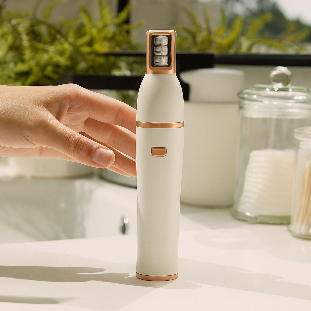 Er verlangsamt das Nachwachsen, reduziert Hautreizungen und schenkt Ihnen sichtbar glattere, gepflegte Haut – ganz ohne Schmerzen, Termine oder Chemie.